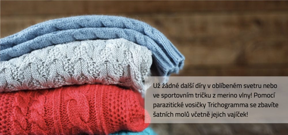 Parazitická vosička Trichogramma klade svá vajíčka do vajíček šatních molů, které aktivně vyhledává po čichu. Na rozdíl od feromonových lapáků působí proti samcům i samicím....